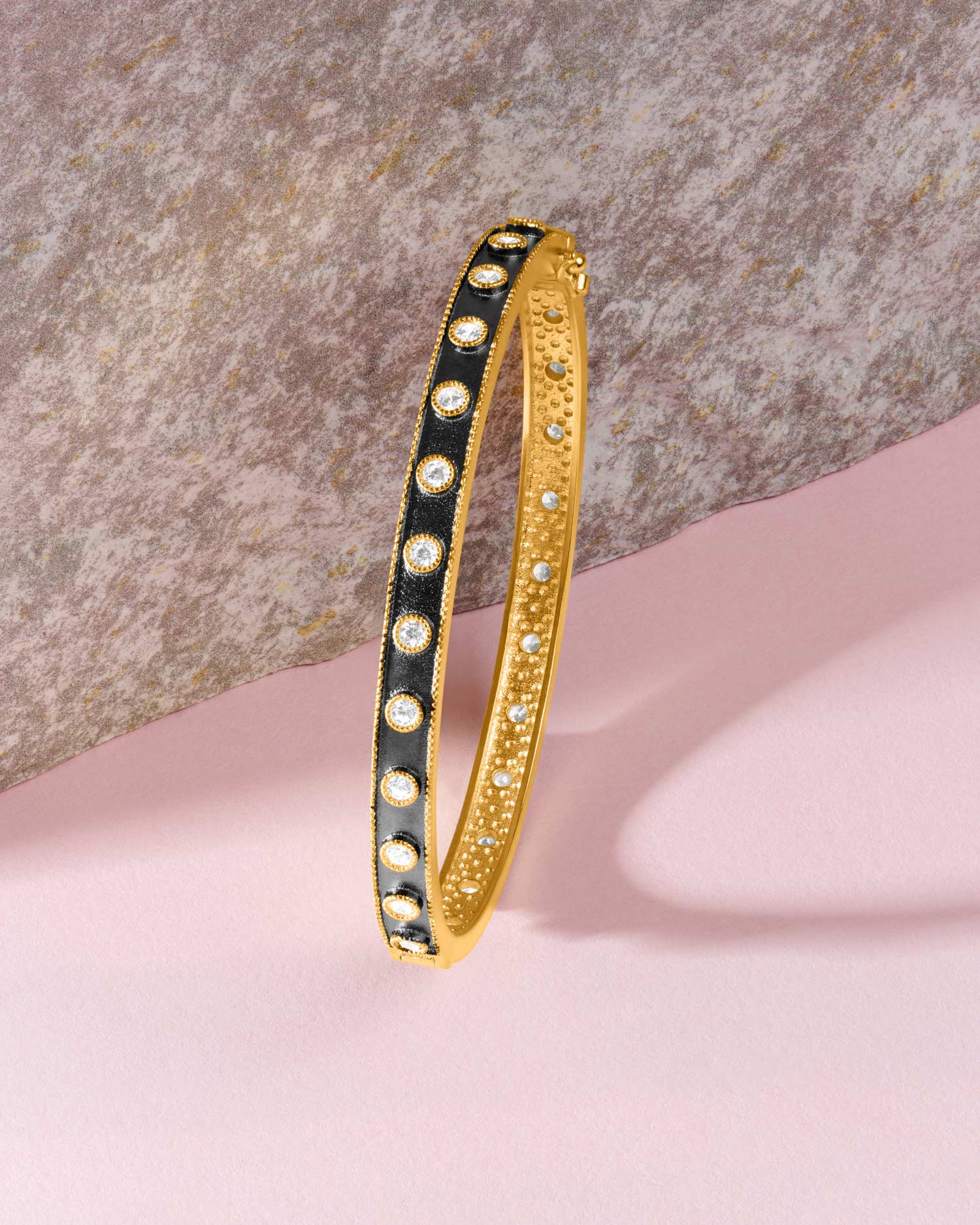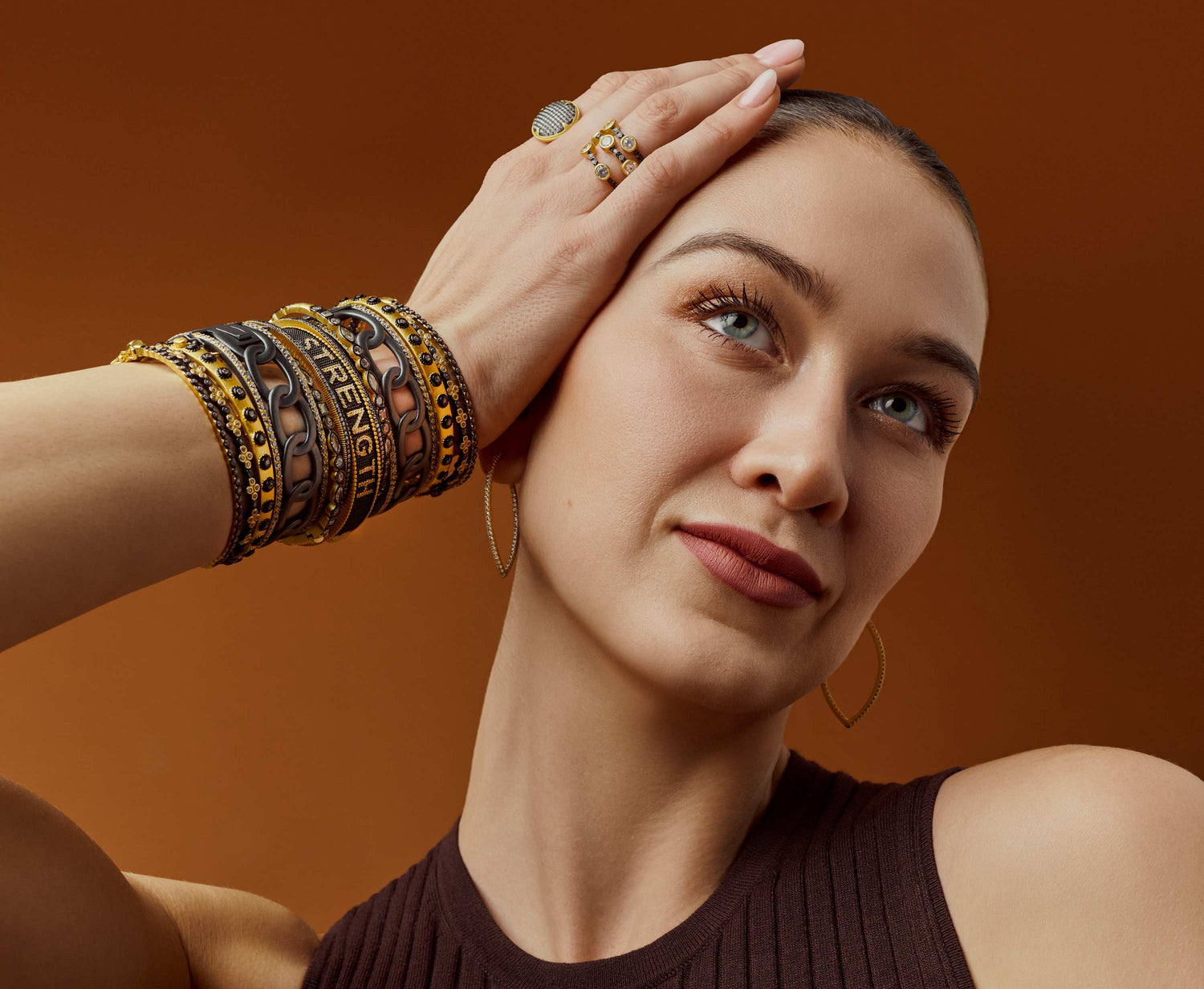 “My grandparents taught me to find beauty in everything. Everyday I am inspired by my hometown of Brooklyn, which gave my grandparents a second chance at life, and design my collections after the most unexpected elements in the city. I love taking all of the grit and transforming it into glamorous jewelry.”
