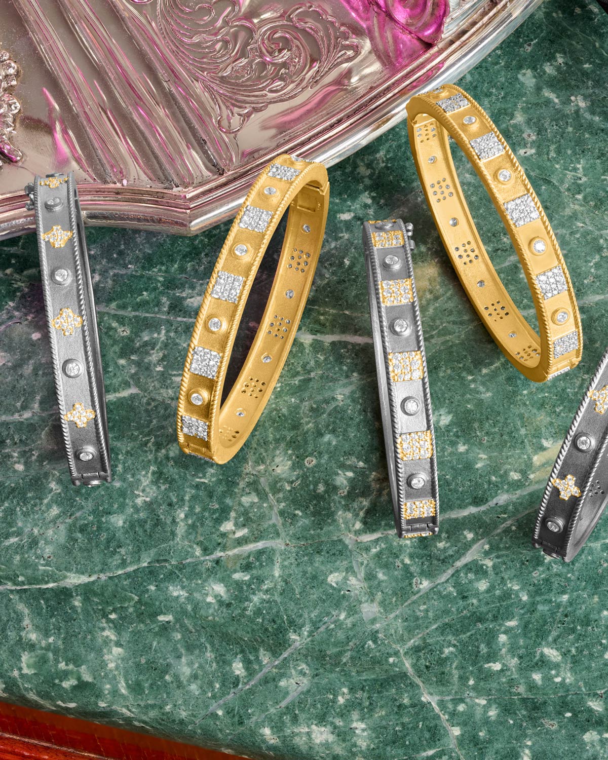Freida Rothman is an award winning Brooklyn-based jewelry and accessories designer. Her handcrafted and intricately detailed pieces are made for effortless elegance. The brand’s signature mixed metal look combines feminine embellishments with edgy designs for a unique, contemporary aesthetic. As a second generation jeweler, Freida’s knowledge of craftsmanship, artistry, and production positions her as an industry leader of jewelry and accessories.