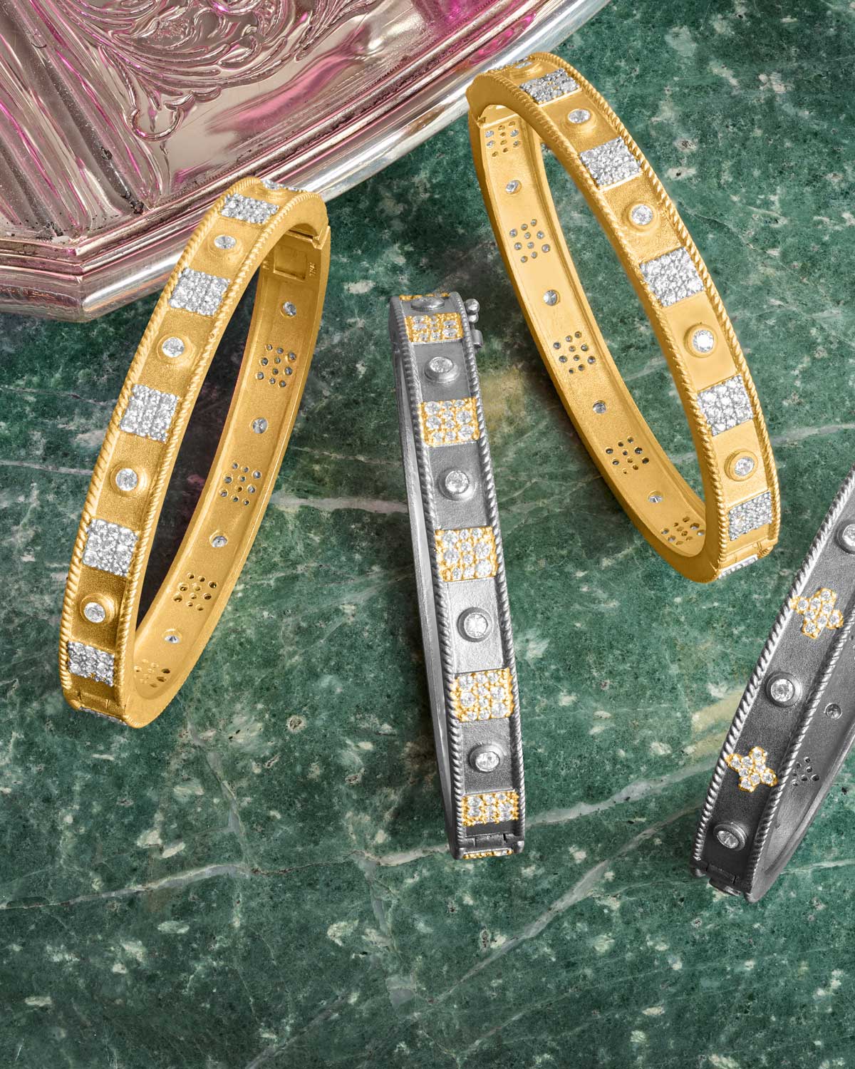 “My grandparents taught me to find beauty in everything. Everyday I am inspired by my hometown of Brooklyn, which gave my grandparents a second chance at life, and design my collections after the most unexpected elements in the city. I love taking all of the grit and transforming it into glamorous jewelry.”