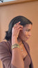 - Hand-set cubic zirconia and mother of pearl stones